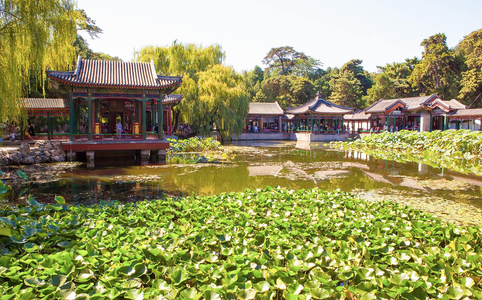 Mit dem schnellsten Hochgeschwindigkeitszug der Welt fahren wir in die Hauptstadt Peking. Wir besuchen den Sommerpalast (Eintritt inkl.), ehemals die Sommerresidenz der chinesischen Kaiser. Die weitläufige Anlage beeindruckt mit traditionellen Gebäuden sowie wunderschönen Landschaften und gilt als Höhepunkt der chinesischen Gartenbaukunst. Seit 1998 gehört der Palast zum UNESCO-Weltkulturerbe. Im Anschluss besuchen wir ein Geschäft. Dort erfahren wir mehr über Süßwasserperlen.
