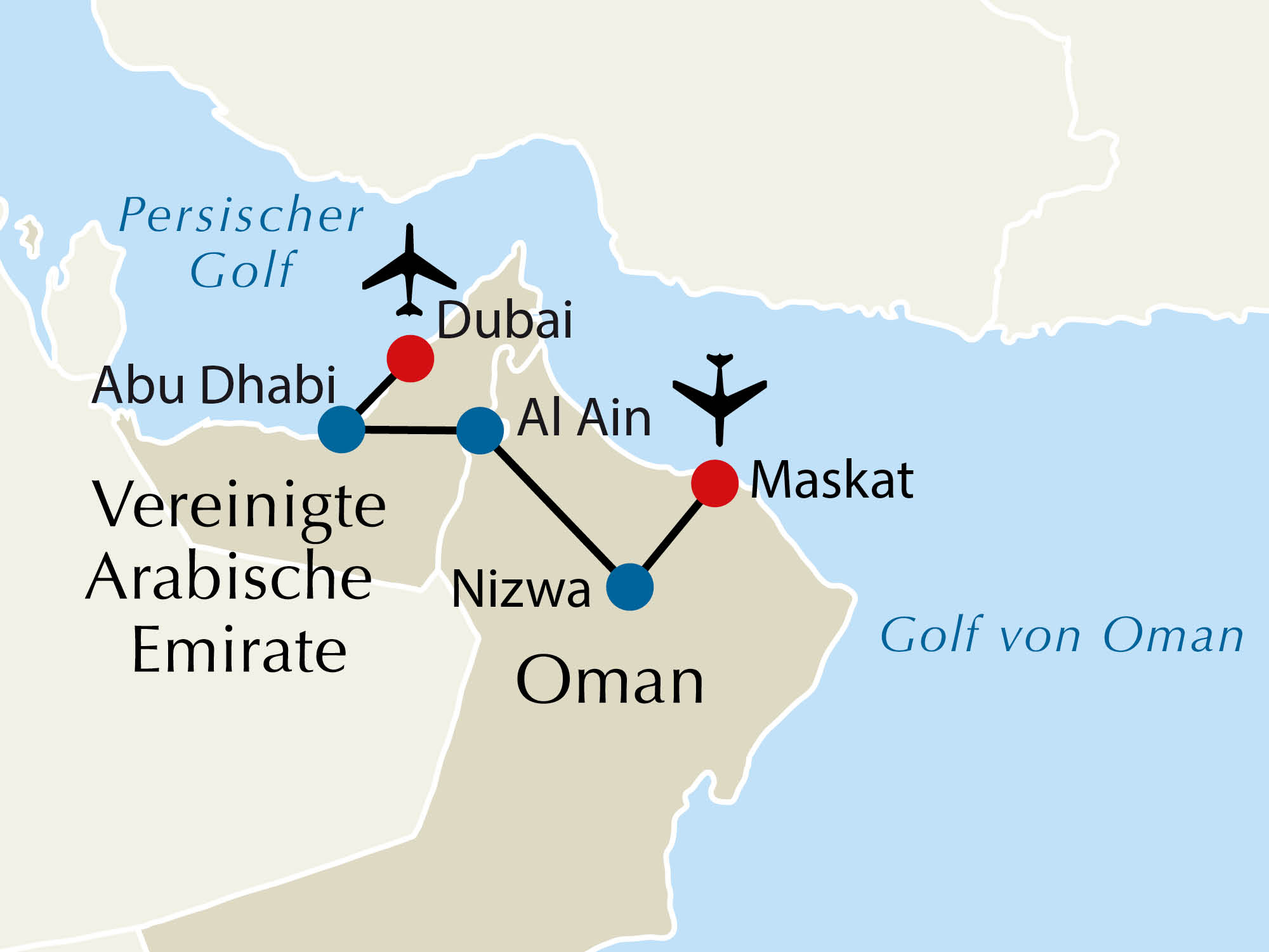 Hinweis: Einreisebestimmungen für österreichische Staatsangehörige können sich kurzfristig ändern, ohne dass das Auswärtige Amt hiervon vorher unterrichtet wird. Rechtsverbindliche Auskünfte und/oder über diese Hinweise hinausgehende Informationen zu den Einreisebestimmungen erteilt die zuständige Vertretung des Ziellandes. Bevor Sie in die Vereinigten Arabischen Emirate und den Oman reisen, prüfen Sie bitte die für Sie gültigen Visabestimmungen und stellen Sie, falls nötig, sicher, dass Sie ein gültiges Visum besitzen. Sie sind selbst dafür verantwortlich, ggf. erforderliche Visa zu beantragen und vorzuweisen. RSD übernimmt keinerlei Haftung, falls Sie dies versäumen. Bitte beachten Sie, dass die Einreise in die VAE von der Genehmigung der Immigrationsbehörde abhängt.